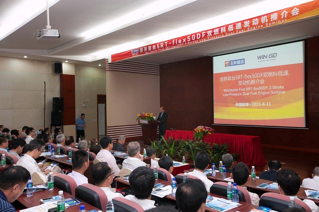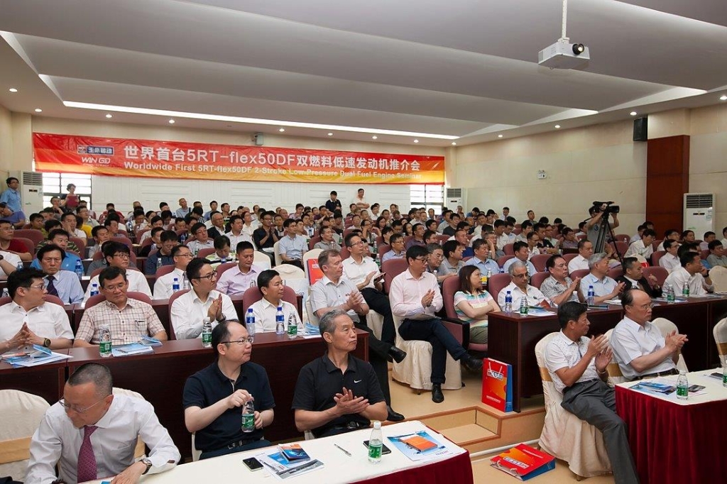 近日,世界首臺(tái)投入商業(yè)運(yùn)營的5RT-flex50DF船用雙燃料低速發(fā)動(dòng)機(jī)在玉柴船動(dòng)成功交驗(yàn)。2015年6月11日,玉柴船動(dòng)舉行了5RT-flex50DF雙燃料低速機(jī)客戶日活動(dòng),船東、船廠、設(shè)計(jì)院、船級(jí)社、供應(yīng)商、同行造機(jī)廠、專利公司等各界代表共計(jì)300多人參加活動(dòng),受到了行業(yè)內(nèi)各方的廣泛關(guān)注。
